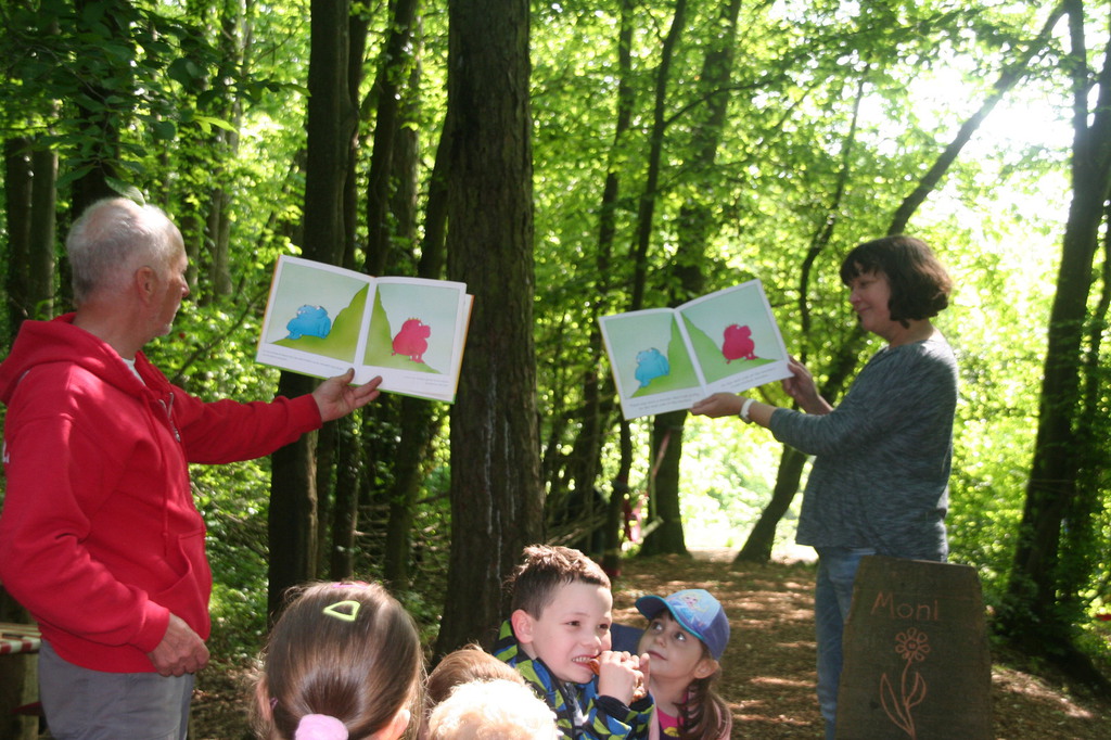 Immer mehr wird erkannt, dass eine möglichst frühe Begegnung mit Fremdsprachen wichtig ist. Dies unterstützen wir durch wöchentliche Englischeinheiten mit Ute Maischein. Ute ist Mutter eines der Waldkinder, gleichzeitig ausgebildete Englischlehrerin und bringt den Kindern spielerisch mit Bildern und Geschichten die englische Sprache nahe.